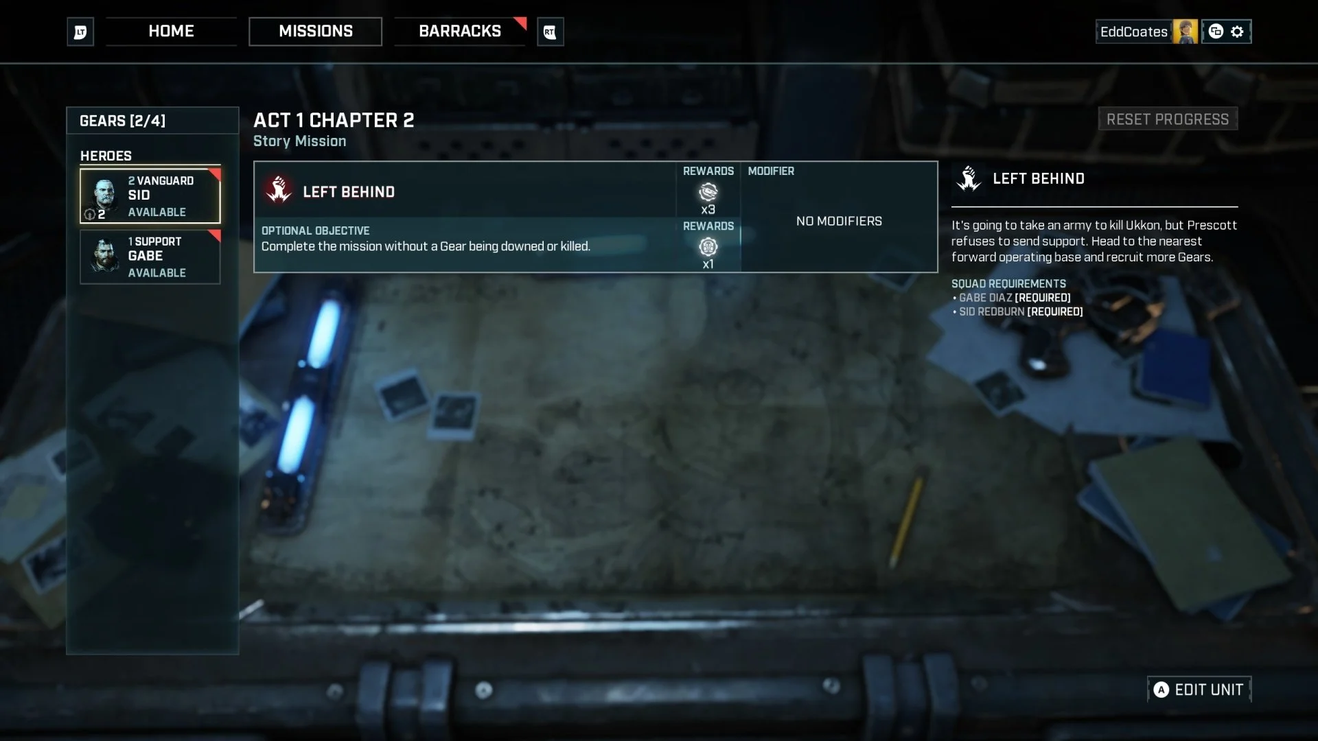 For the customisation screens and barracks, consisting of a roster of characters for the player to modify and upgrade, my primary focus was to finish incomplete features and improve on the overall usability and flow of these features as well as identify areas of improvement for localisation needs and basic accessibility for text readability.