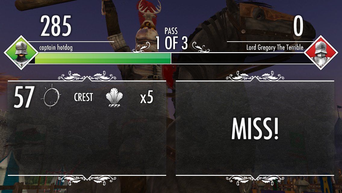 As with the HUD, I maintained a clear left and right positioning to convey the versus competitive nature of jousting.