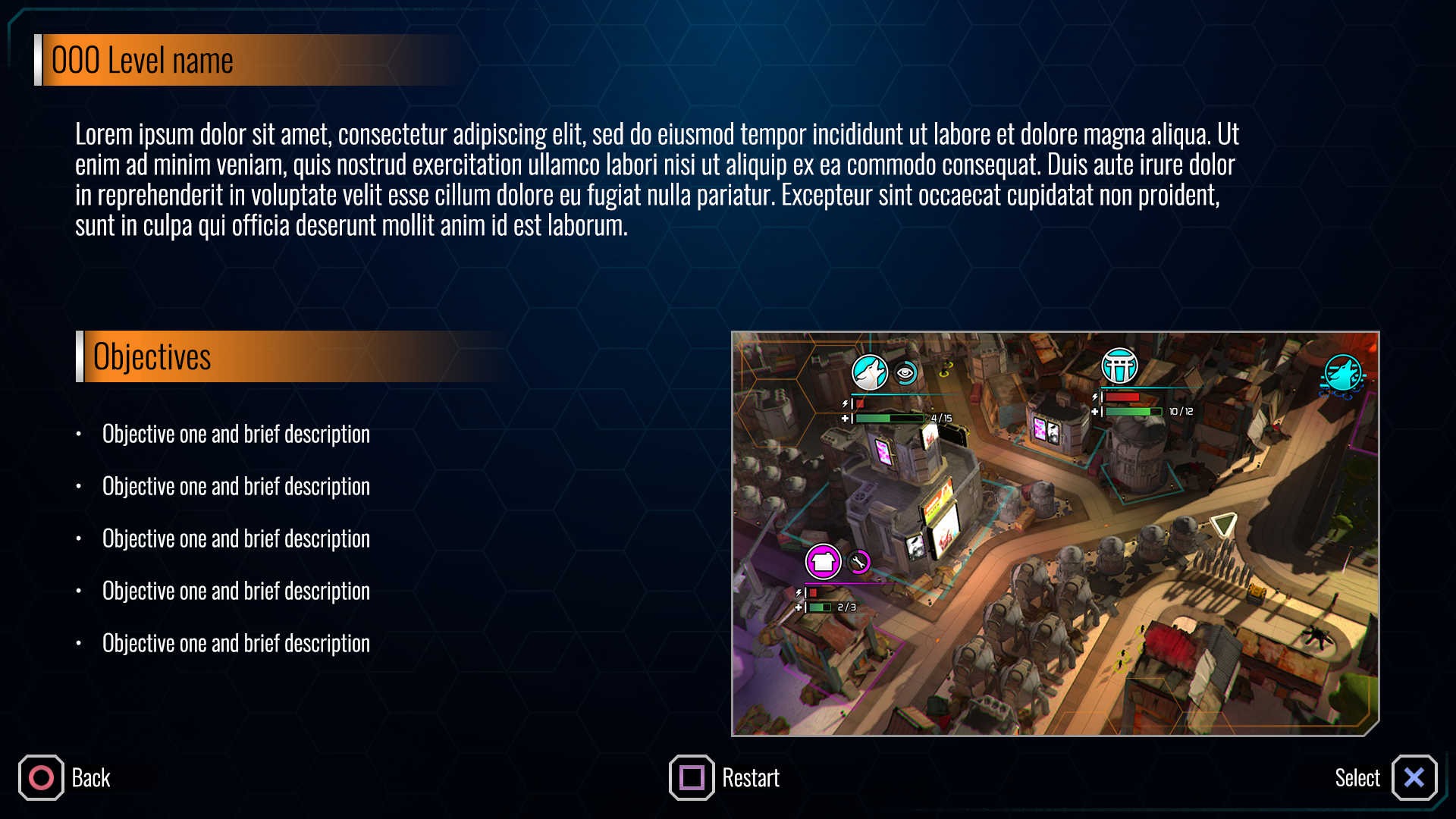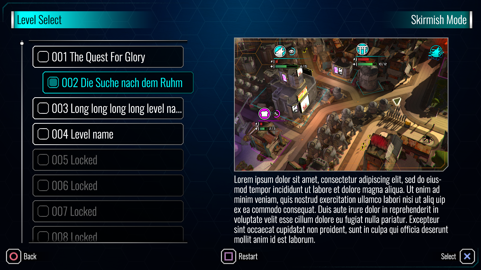 An alternative layout for level select in skirmish mode.
