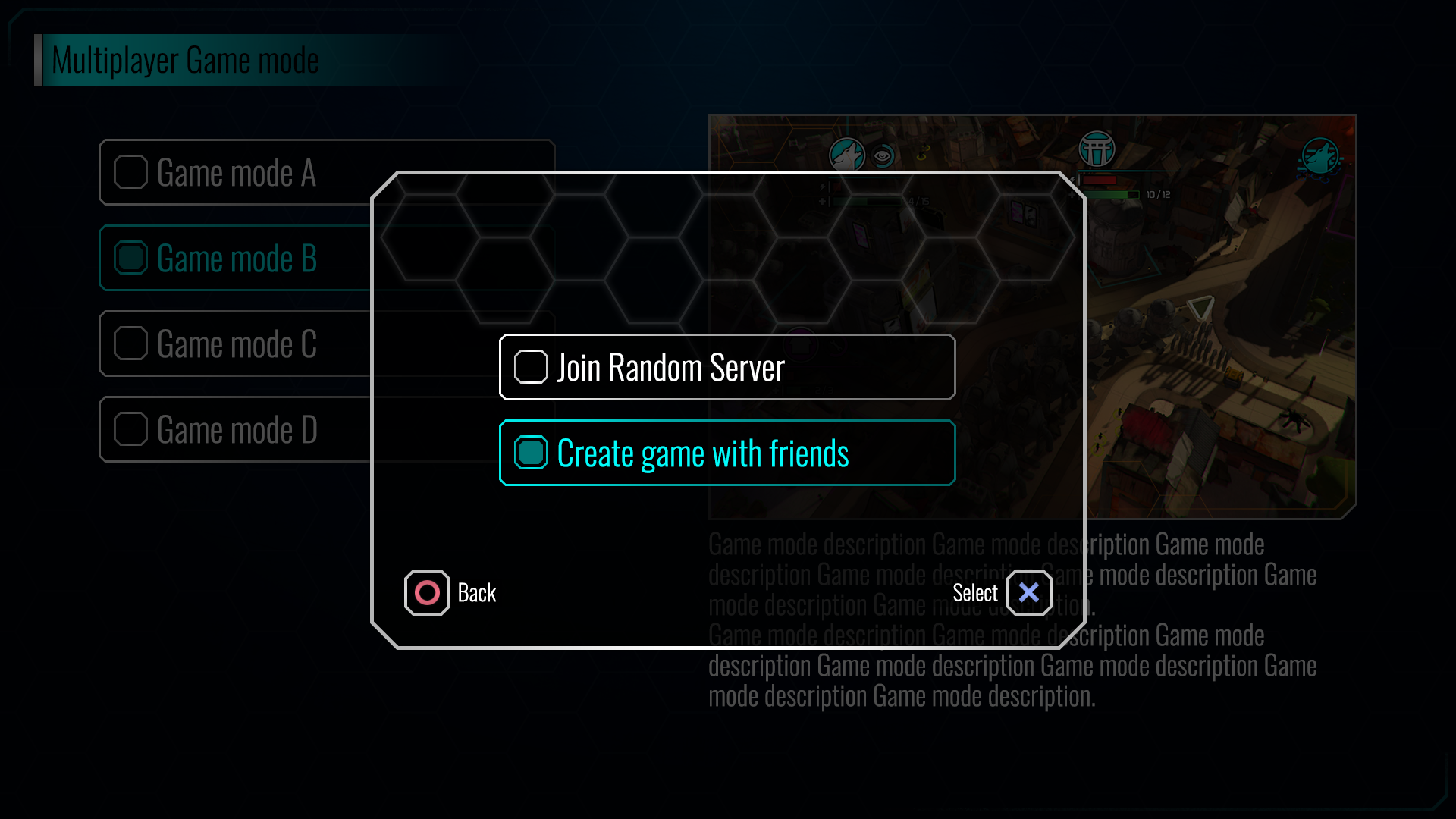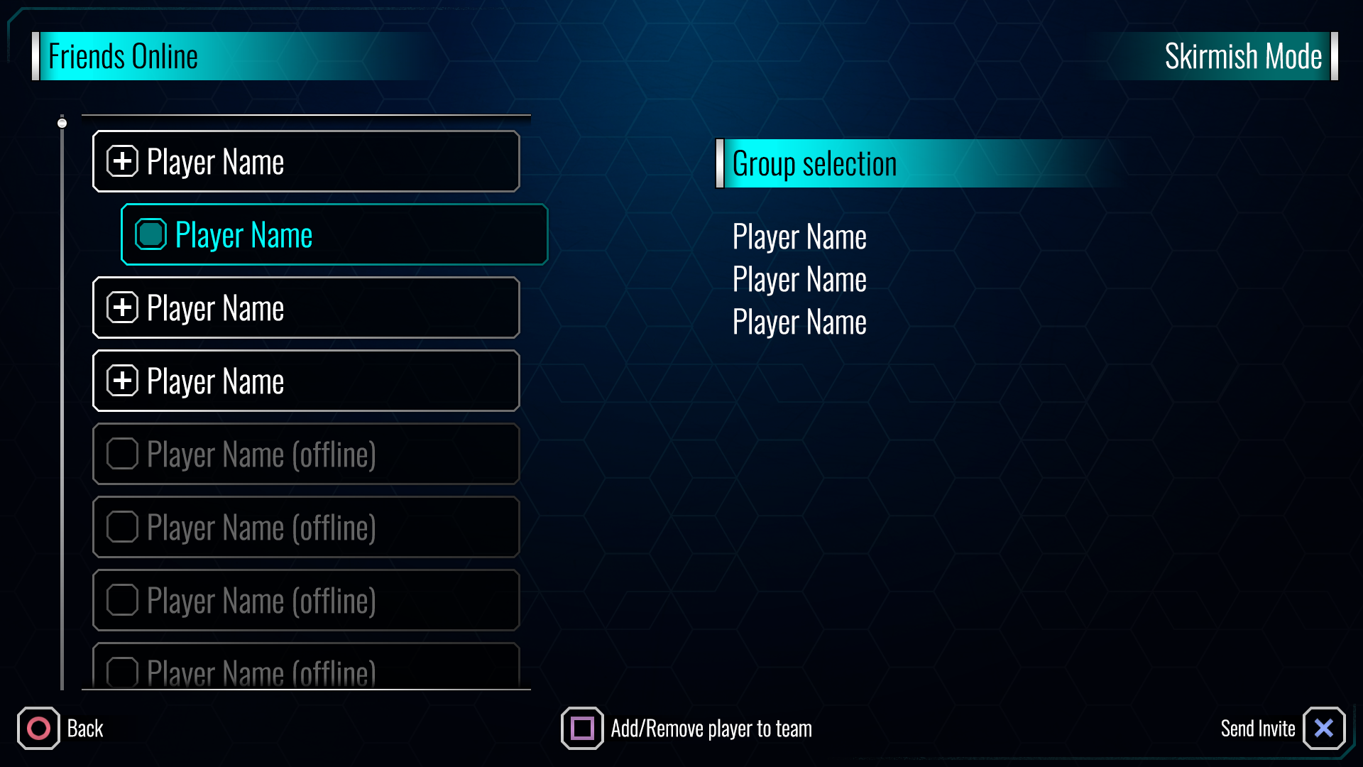 An in-game representation of the platform friends list to enable the player to play in co-op mode. The player could select multiple players to form a team before sending the invite en-masse.