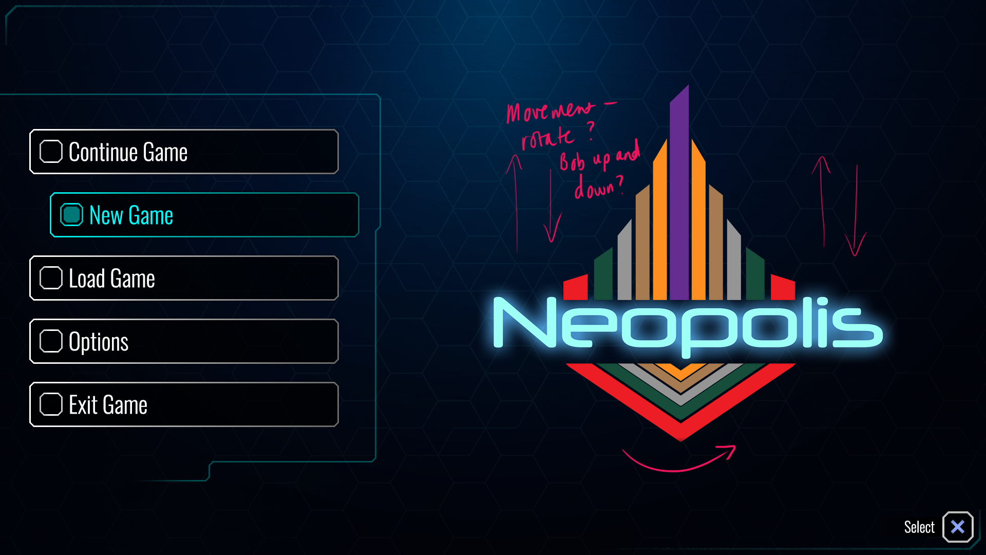 A concept for a minimal Main Menu with an animated game logo.