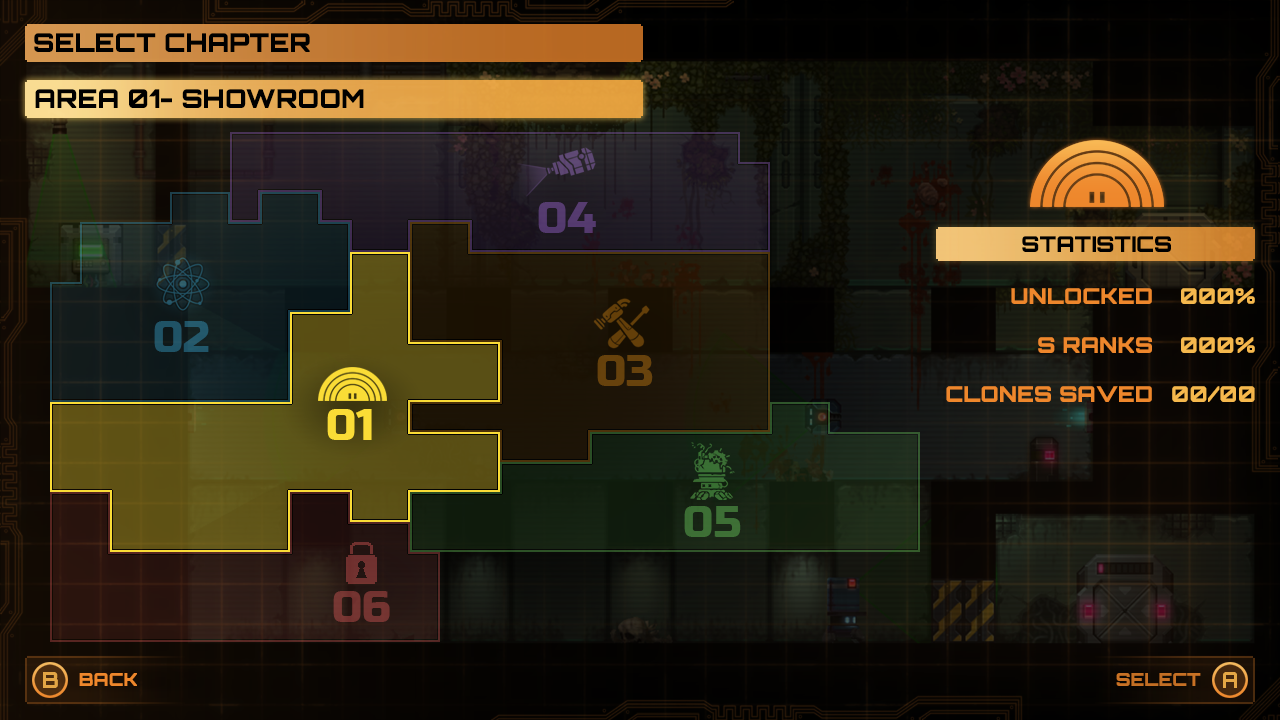 For the chapter select screen I wanted to convey the theming of a ‘you are here' location map you may find for an office floorplan.