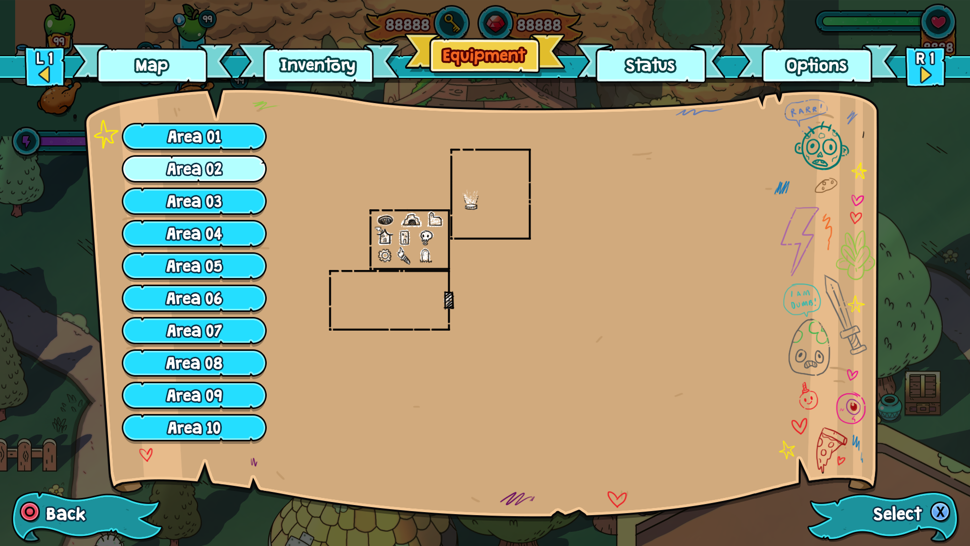 The map expanded as the player discovered new areas of the world. To capture that concept and to tie into the adventurous child like quality of the player characters I designed the map to have a hand drawn pirate map like quality as though the character drew it as they explored.